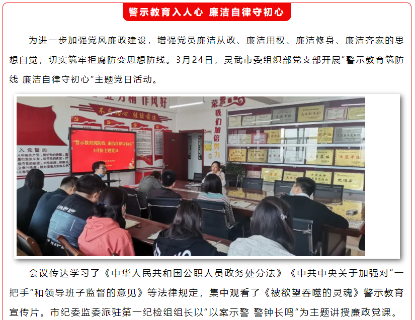 靈武市委組織部黨支部開展“警示教育筑防線 廉潔自律守初心”主題黨日